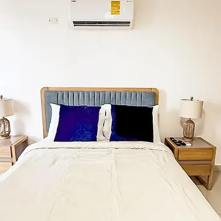 The apartment includes a fully equipped kitchen with climate control for utmost comfort.